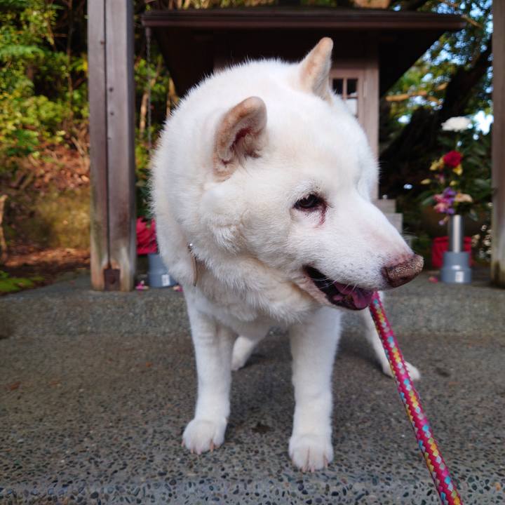 ロン)🕊️ #柴犬#白柴#お不動さん#不動明王#千五百四十三度目#いつもの散歩道