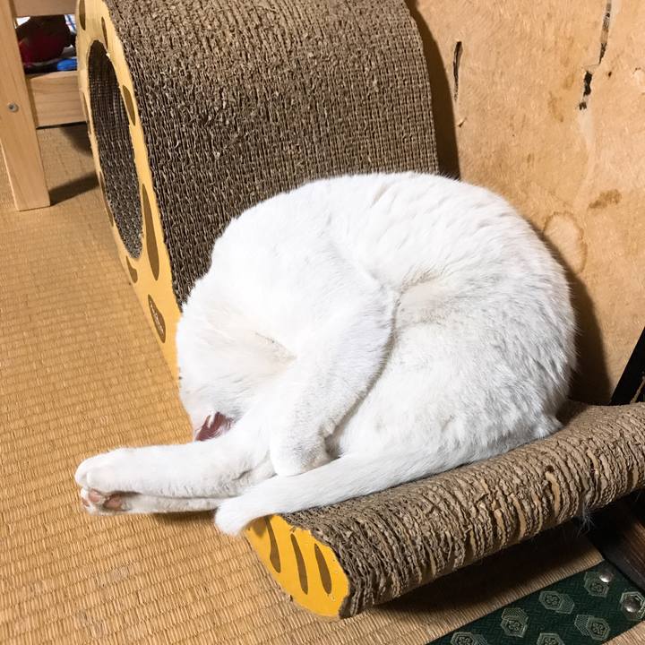 あれ?今日は夜の野外活動はお休み? #白猫 #チーム白猫 #ミジンコ寝