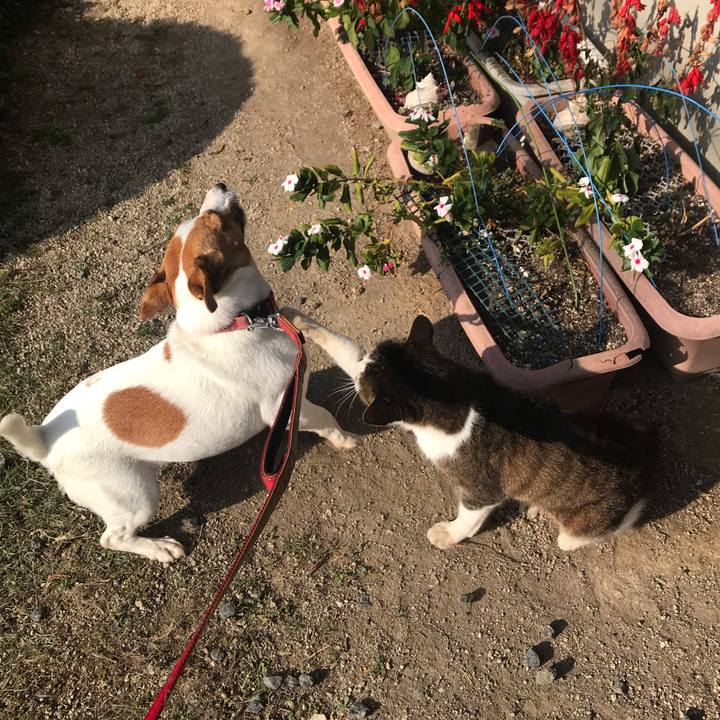 勝手にまたぐんじゃないわよ🐱💢 #ジャックラッセルテリア #JRT #犬と猫