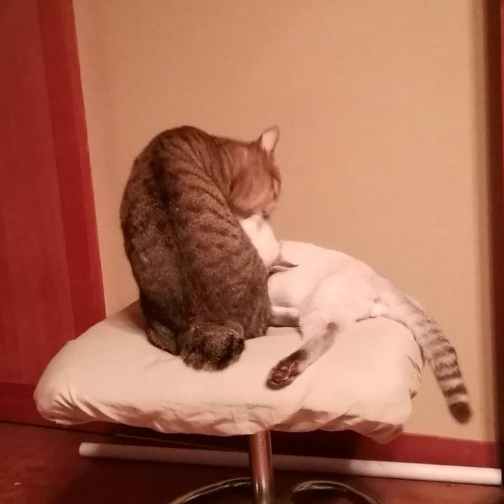 #キジトラ #仲良し 「兄ちゃん、爪を切られたよう!」 「よしよし」