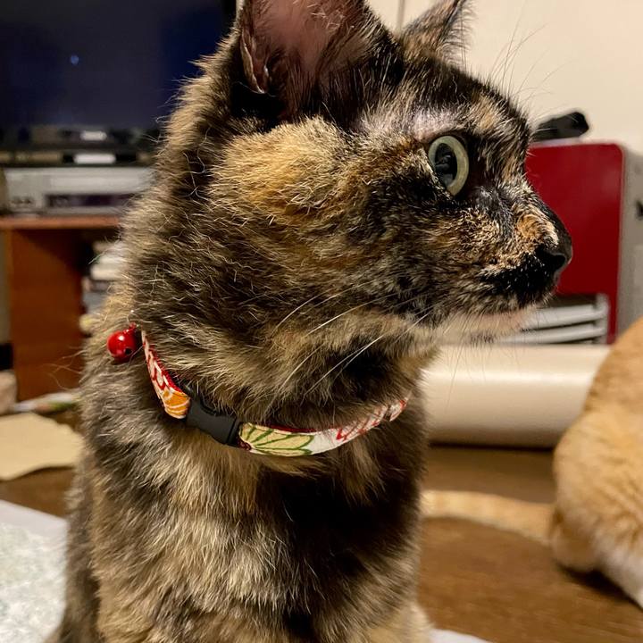 お誕生日プレゼント🎁は 新しい首輪🎀 #お誕生日 #サビ猫 #お祝い #和柄