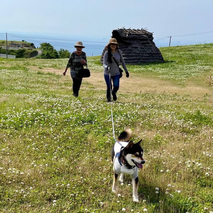 おばあちゃんも一緒なので、更にご機嫌。#柴犬#淡路島#竪穴式住居#五斗長垣内遺跡