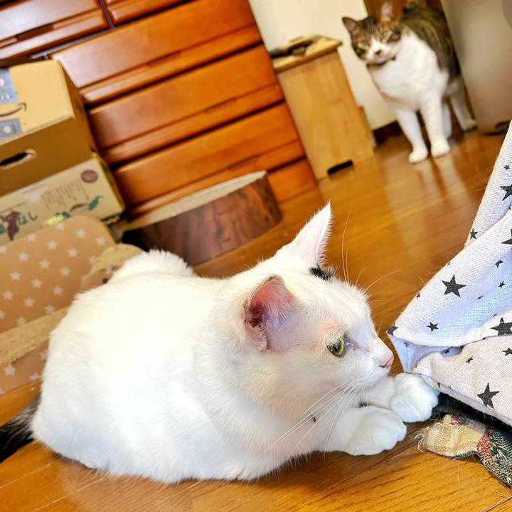 この辺りに何か居る👀 #白黒猫 #保護猫 #YYバンド