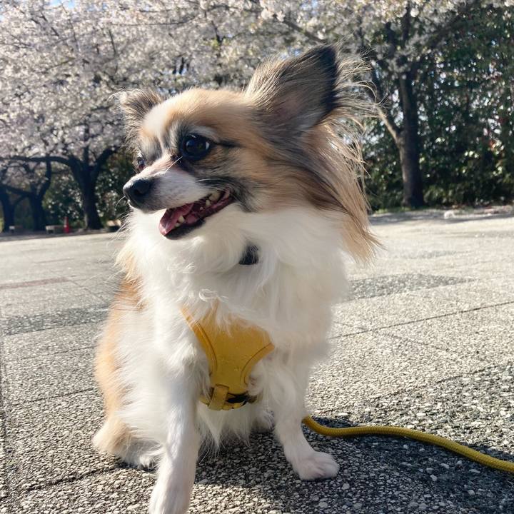 珍しく素敵な感じの✨つくねさん #桜 #チワワ #パピヨン #内股 疑惑💗