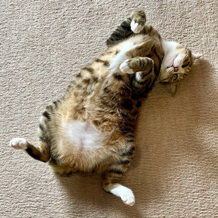 セミが鳴きはじめたぜ〜! 夏だぜ〜🌻オレの開き♪ #へそ天 #保護猫 #cat