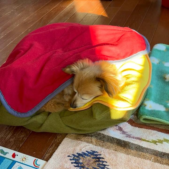 調子よさそうな寝相にホッとする💞 不調のときは、うずくまっていて眠れないのです🐶