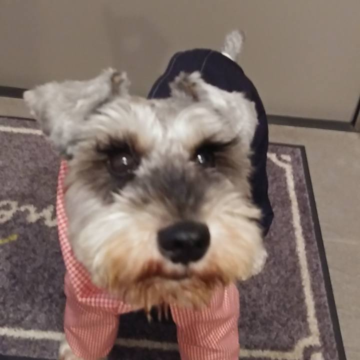 今日は涼しい🐾 今週もよろしくね♪ 頭の上に手の影が💦 #シュナウザー