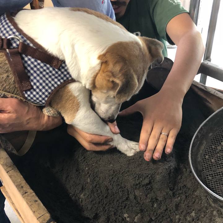 ①ガラスの手形を作るよ🐾レオ真剣に作っています😊#ジャックラッセルテリア #体験