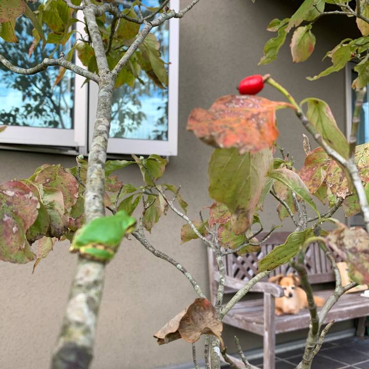 見守られる福ちゃん🐸🐶 #チワックス#ミックス犬#ハナミズキ#カエル