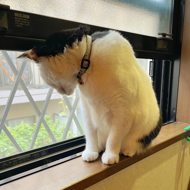今朝は見張り当番👀 #ブラックジャック柄 #保護猫 #ニャルソック #YYバンド