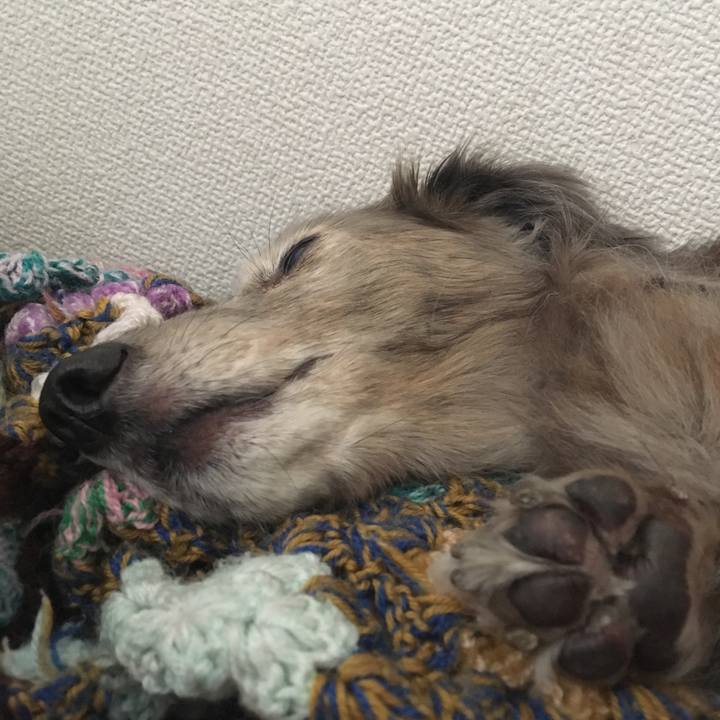 お寝坊飼主に付き合って昼寝してくれたおじいわん。夜中にトイレはみ出し対策で…⬇︎