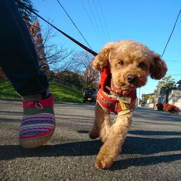 青空の 下を元気に テクテクテク🐾 #トイプードル#お散歩#あさんぽ#いぬ句