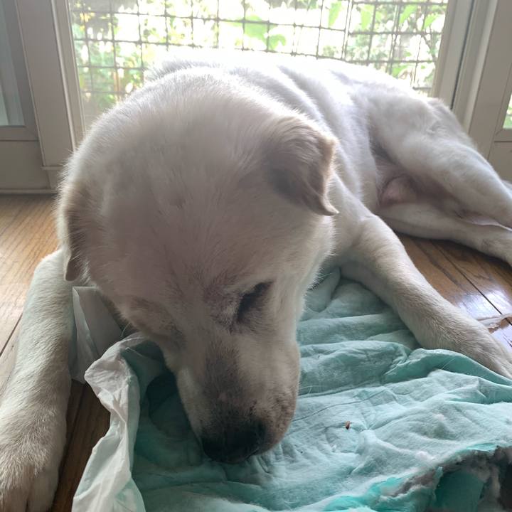 チッコシートを成敗し、満足げな小太郎氏😓#遊んでみた #老犬 #白犬