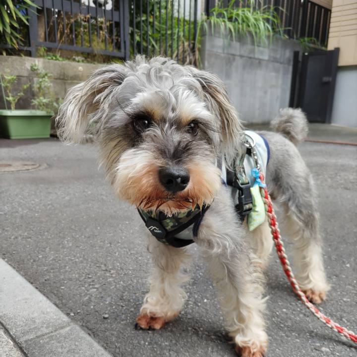 7時まで寝てたコ。 でも今朝は少し涼しく感じた、朝ん歩🐾#シュナウザー