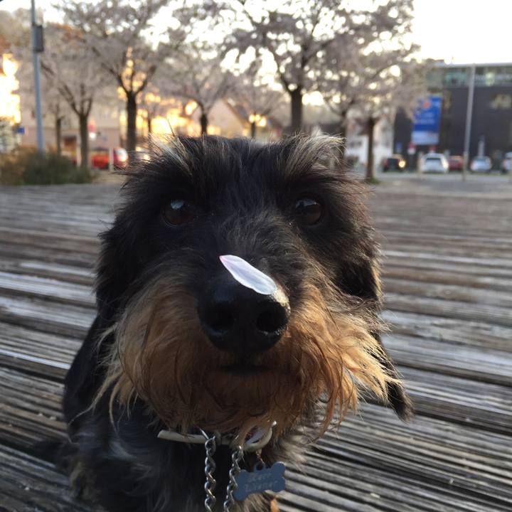 散り急ぐ 桜🌸の花弁 ヴィナたん、ぺっ! #いぬ句 #桜 #花冷え #変顔