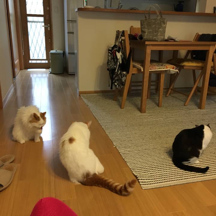 おやち後のペロペロたいむ。 #茶白 #白黒