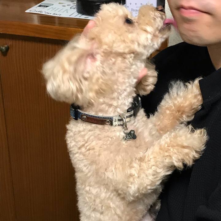 にぃにおかえり🎵 ぺろぺろの刑 スキスキッ♡。 #トイプードル