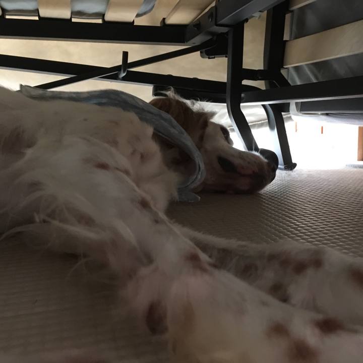 最近は雷鳴ってなくても雨の音で避難する。賢いっちゃ賢い。