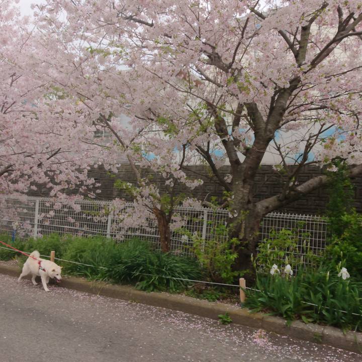 家人)ロン…待って❗待って💦 #柴犬#白柴#こっち見ない💔#ふんふんふん#桜