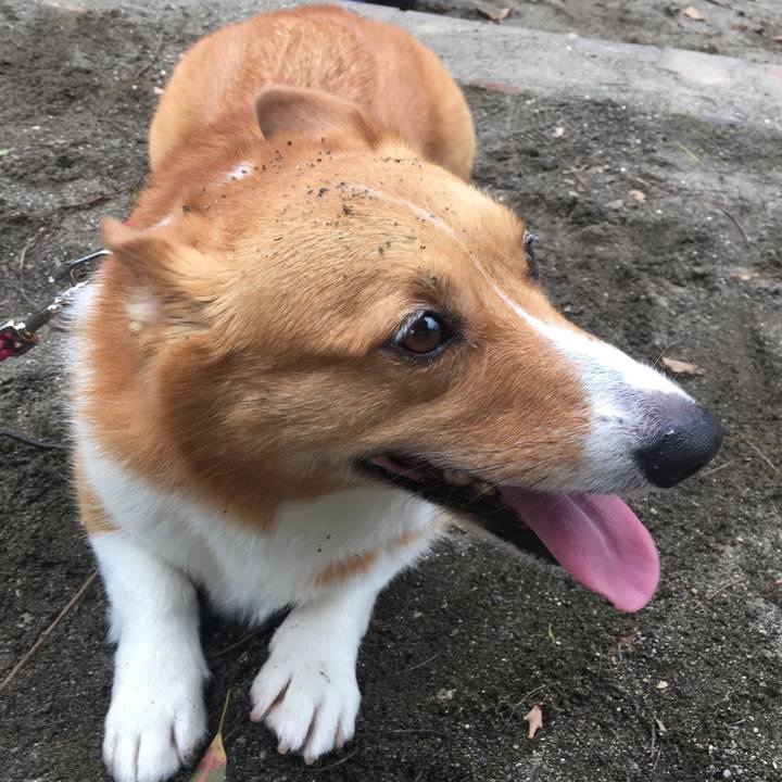 蒸し暑い1日だったねぇ、砂場気持ちい ゆめこさん#コーギー