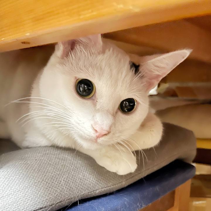 机の下で隠れんぼ😉 #白黒猫 #1歳 #保護猫 #YYバンド