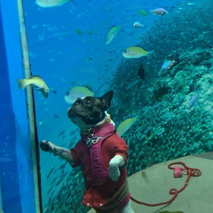 魚さんに夢中なブリス#フレンチブルドッグ#柴犬#ワンコ遠足#マリンパーク#ご挨拶