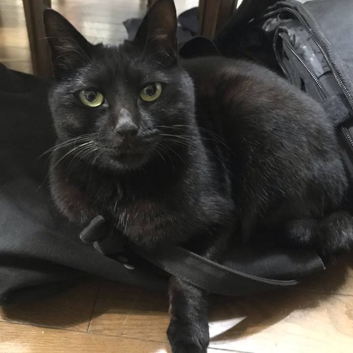 黒バッグ 床にあったら お座布団 #黒猫 #ねこ句 見逃さないね
