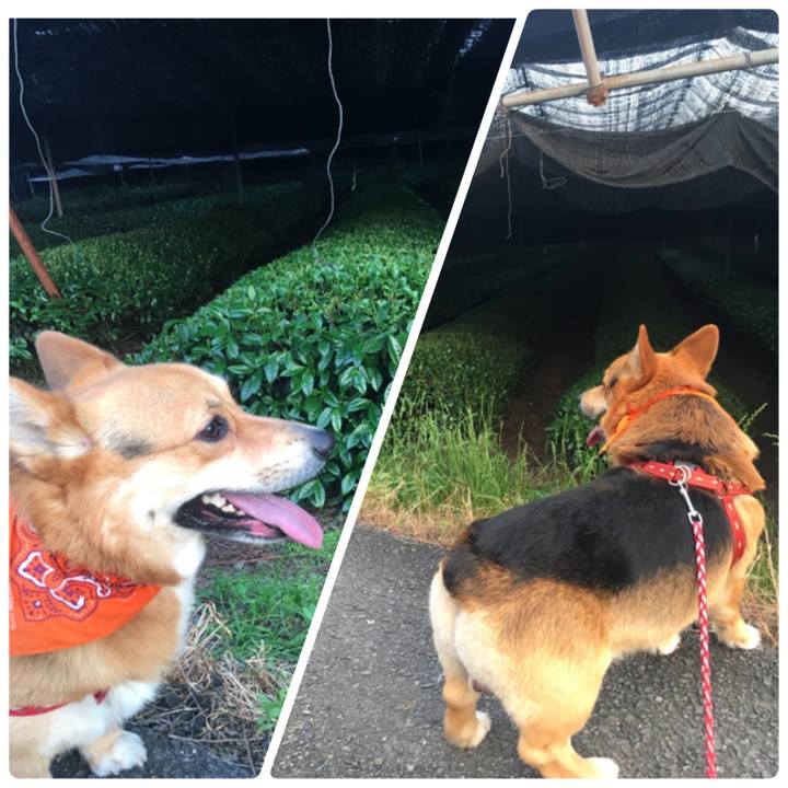 テンの地方は今茶摘みの真っ最中‼️ 母しゃん朝から摘みに行っててん😊#コーギー