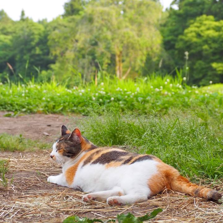 昨日の最高気温は30℃でした♨️ #牛小屋猫 #三毛猫