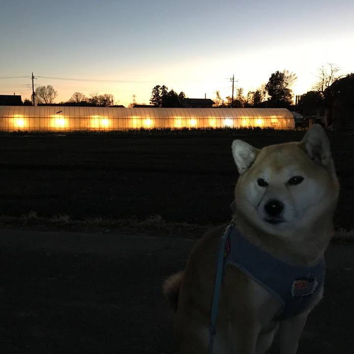 あ、イルミネーションと思ったら、ビニールハウスの明かりだった件 #柴犬