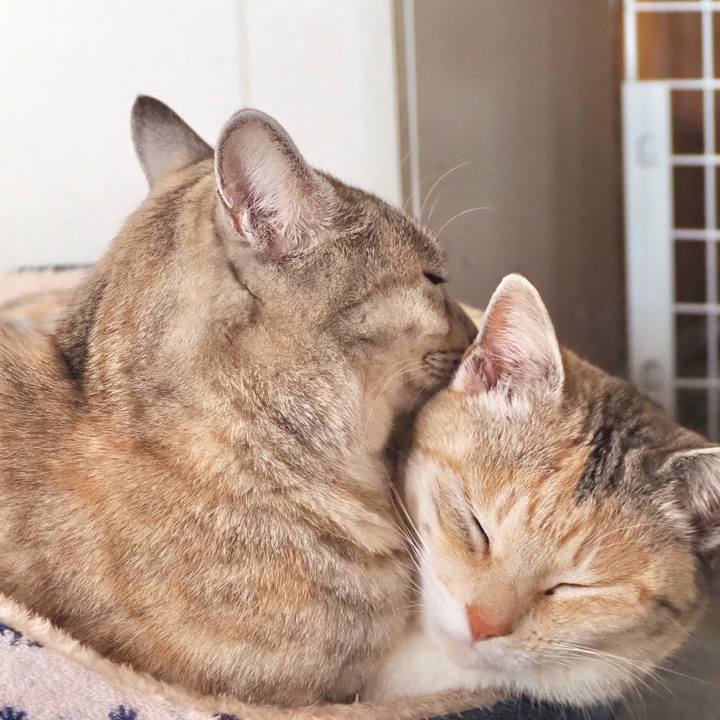 ぎゅうぎゅう💕 #三毛猫 #サバトラ #姉妹