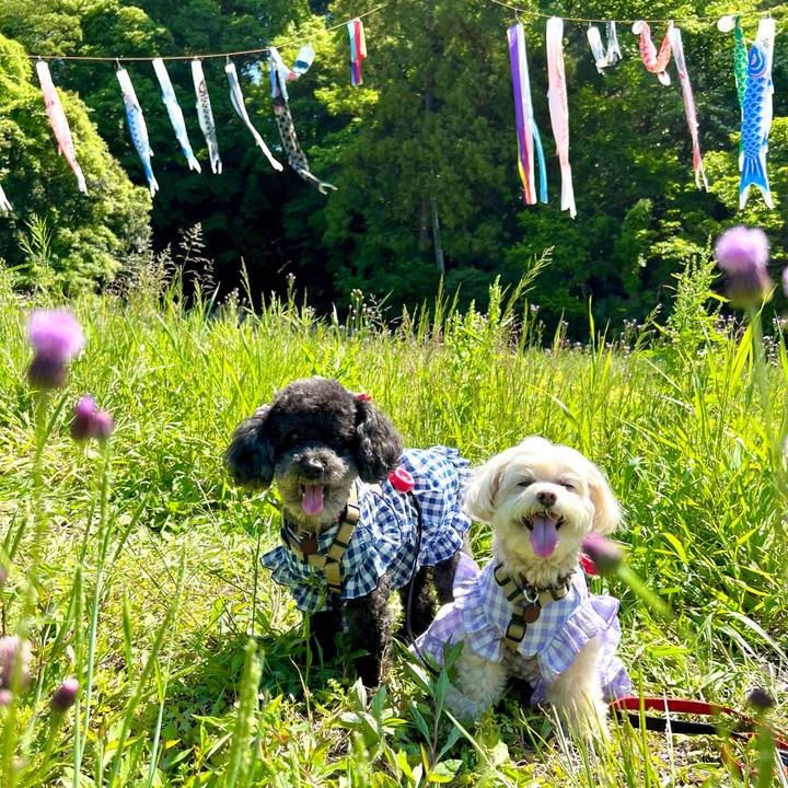 今朝の#あ散歩 🐾鯉のぼり🎏見に行って来たよ😊 #鯉のぼり#デカイ部 #笑顔