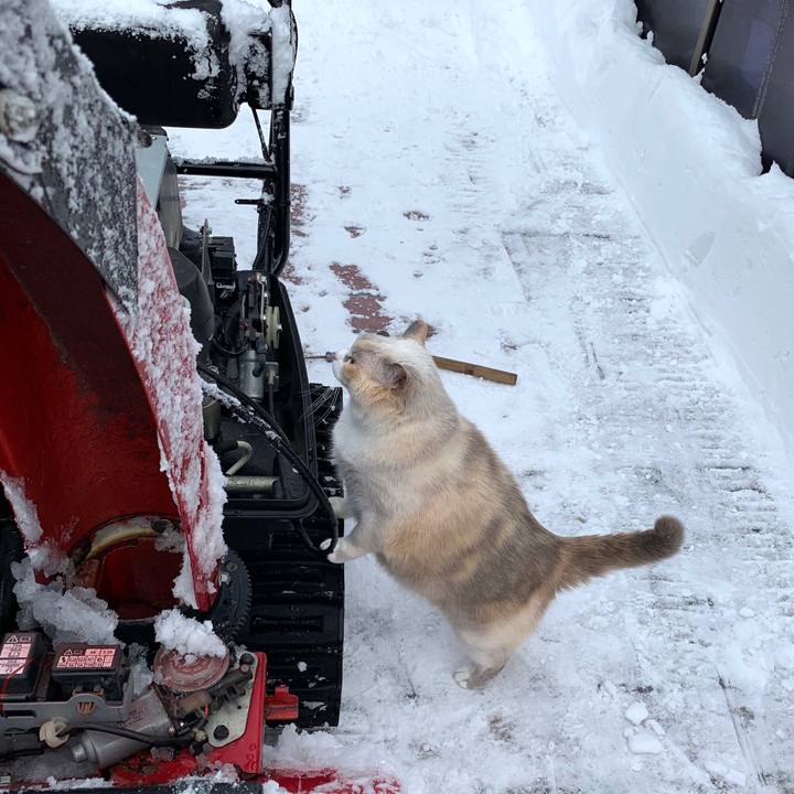 除雪機の点検をしてくれるミズさん☺️ #三毛猫 #雪