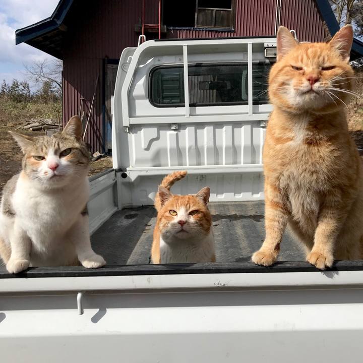 本日のフォーメーション #牛小屋猫 #ボス猫 #茶トラ #茶白 #三毛猫