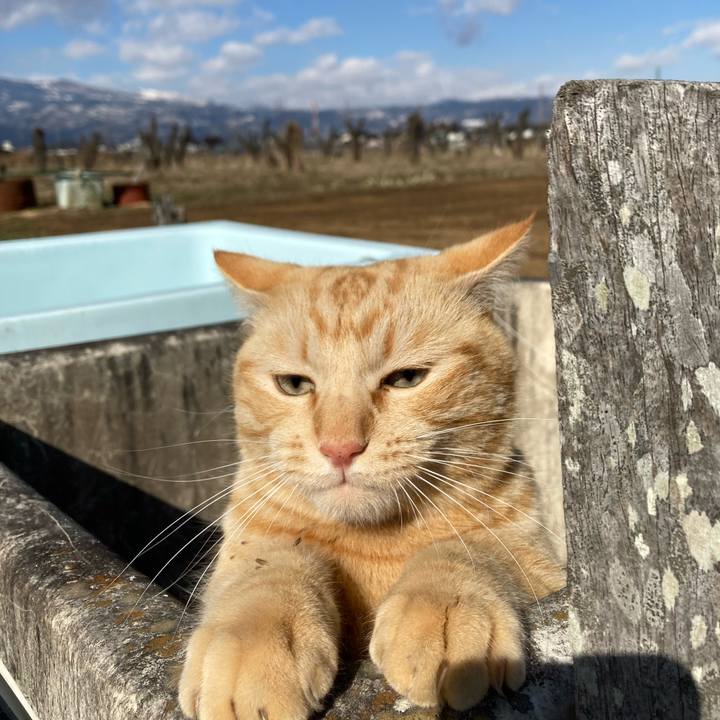 #茶トラ #外 あと10数えたら出るから♨️ ハ〜ビバビバ🎵
