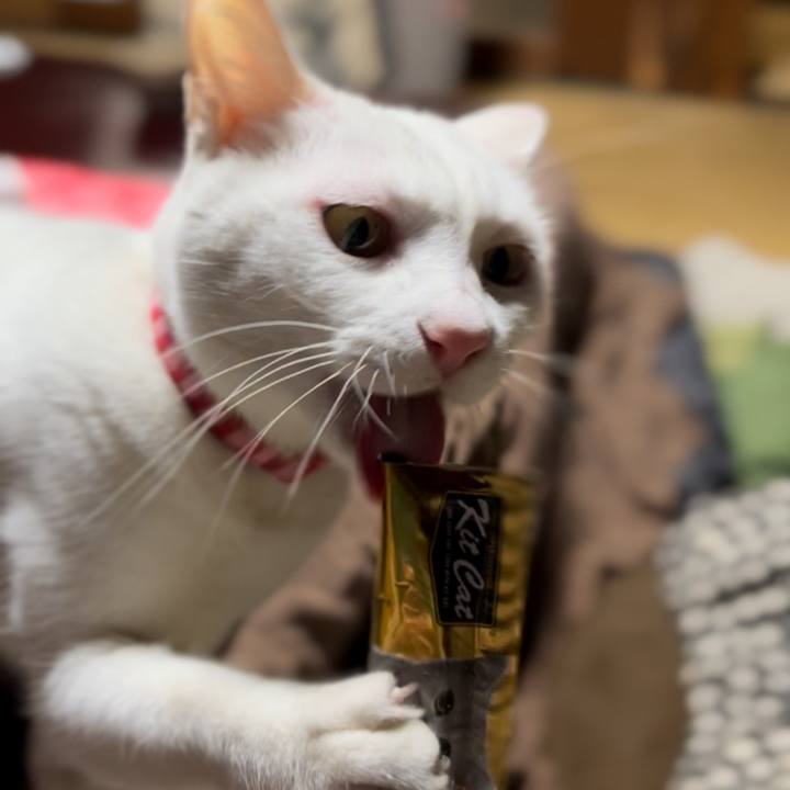 うまうまうま!顔が#般若 😅 #白猫 #チーム白猫 #食いしん坊