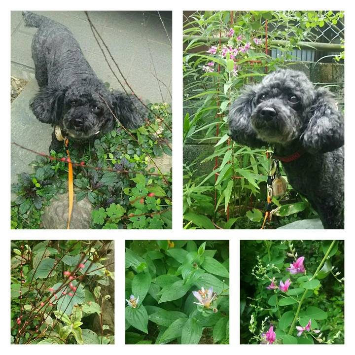 小さなお庭も秋の気配🌼 左より、ミズヒキ、ホトトギス、萩 #お花探し散歩 #秋