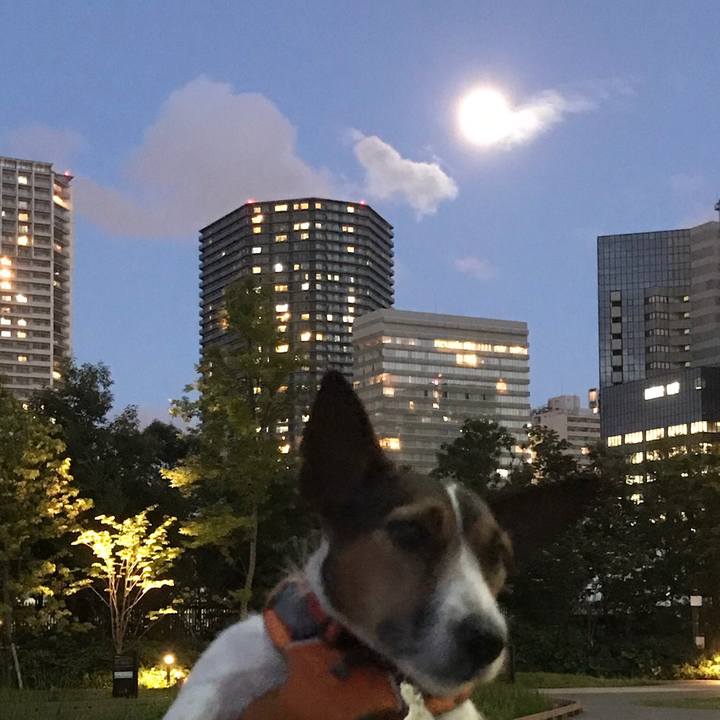 七時過ぎぐらいの満月🌕梅雨入りですがいい天気