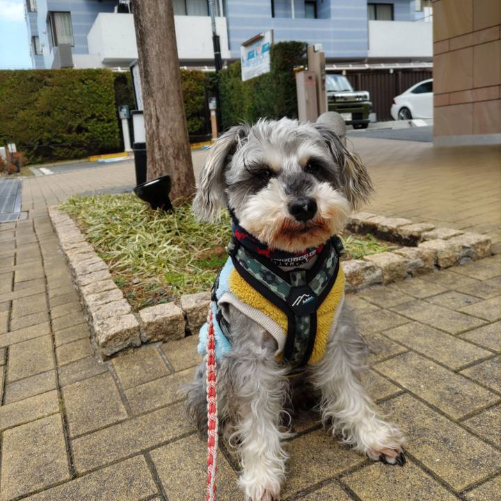ともだちの家の前で待ち伏せ。 誰も来ず💦 #シュナウザー