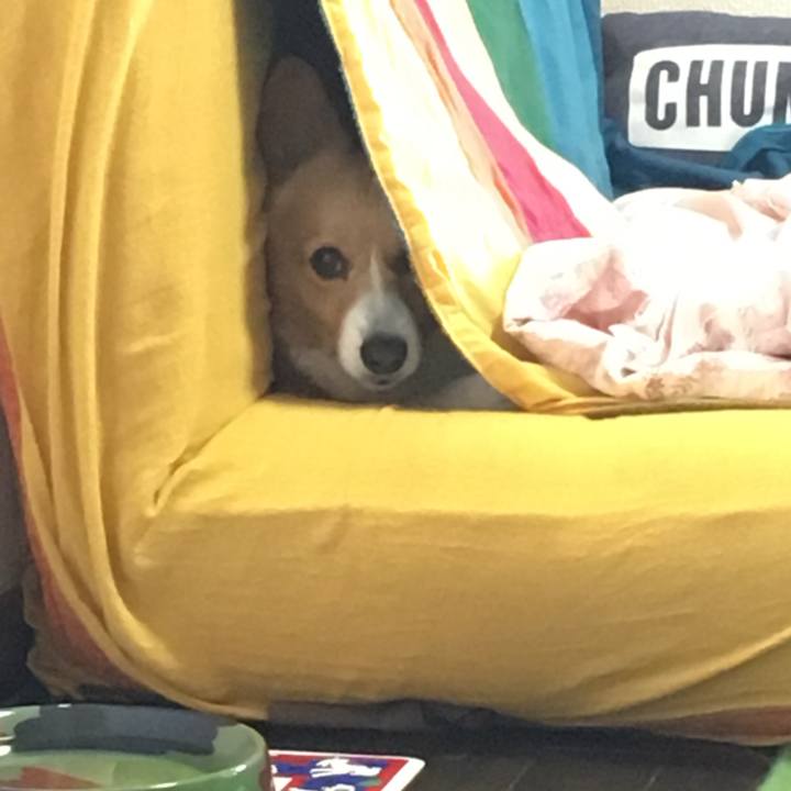 おはよーです☀キッチンにいるおかぁさんを監視中だよ👀✨#コーギー #シャイニング