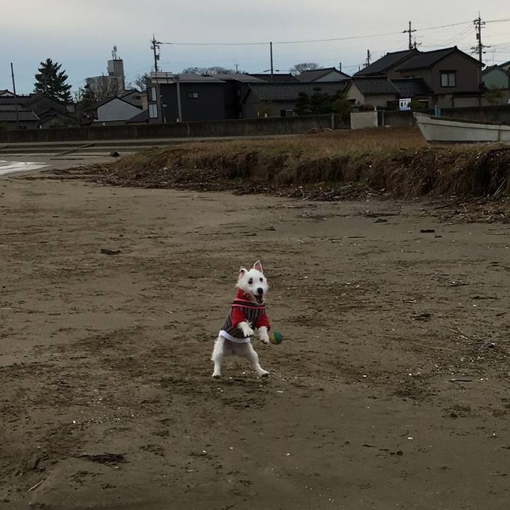 イチニイチニ 歩いちゃった🐶 #うみ散歩 #ボール遊び