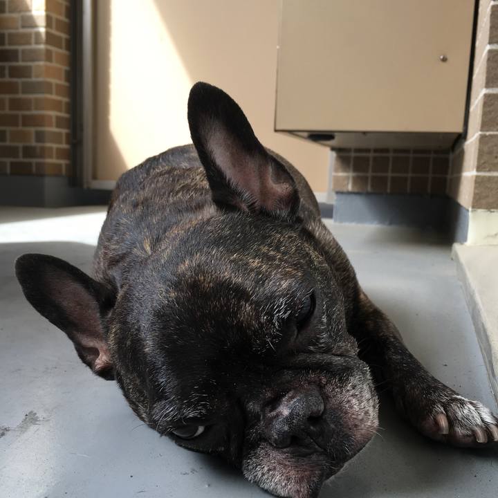ほんの少しの散歩の後の、ベランダで外気浴#フレンチブルドッグ#一緒に昼寝したい