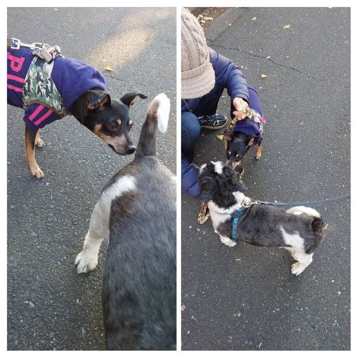 お初の🐶ちゃんとご挨拶出来たよ💓#ミニピン #お散歩