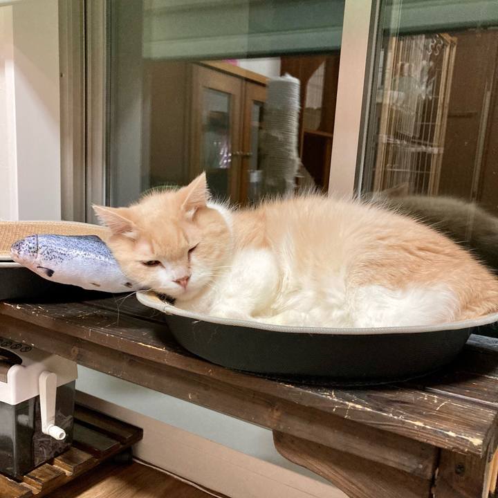 おさかなをまくらにしちゃう きようなねこちゃん #茶白