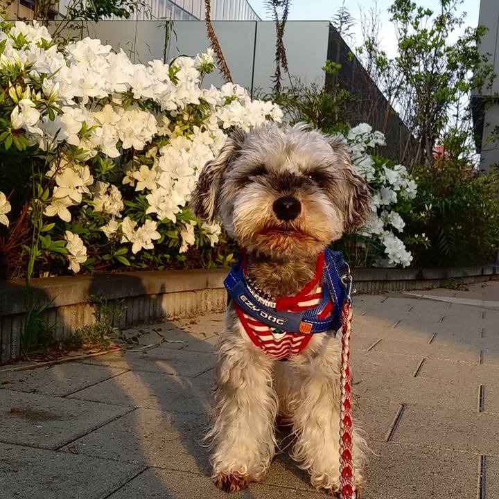 不服顔 おやつポイント ここじゃない #いぬ句 #シュナウザー #花活隊