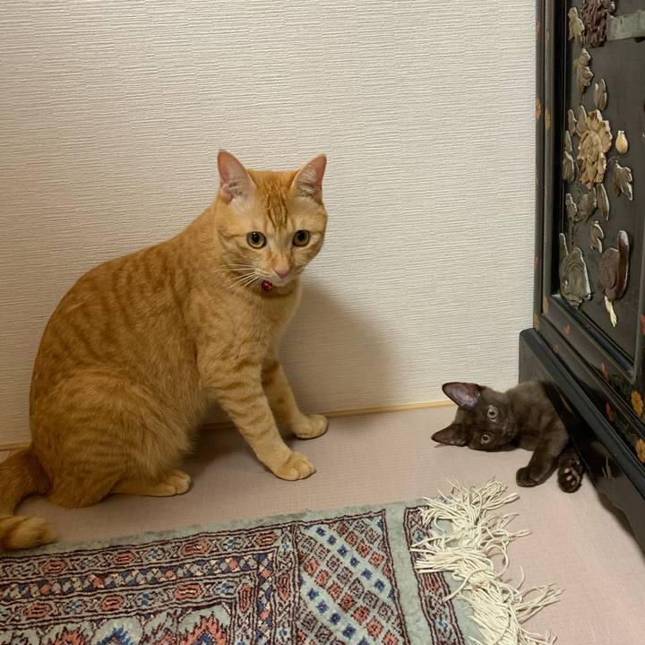 妹よ、そこに逃げ込めるのもあとわずか #子猫 #茶トラ #親バカ同盟 #鬼ごっこ