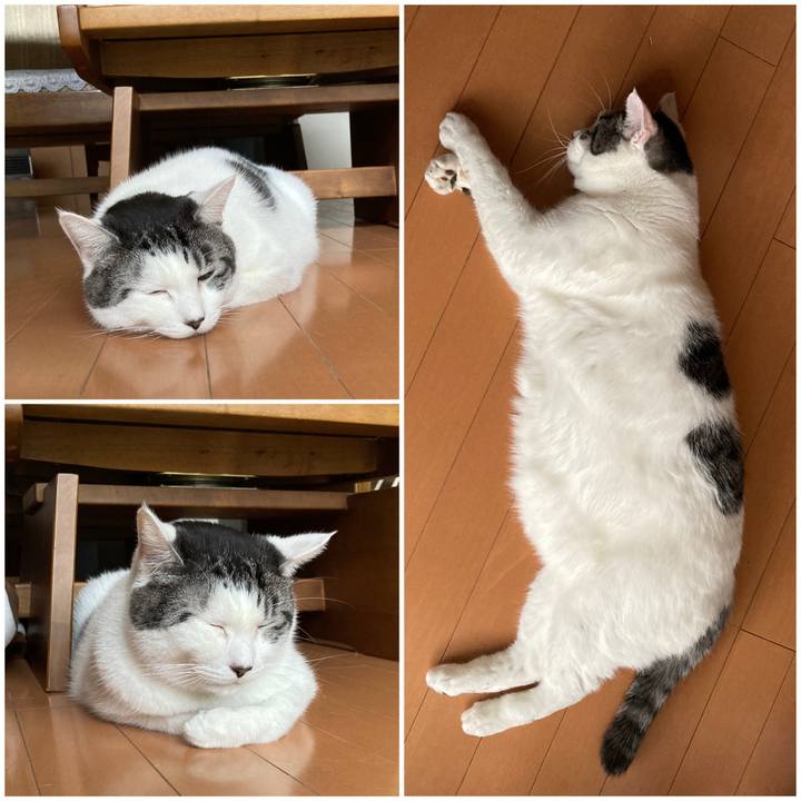#ねこ句 猫もまた床暖房に浸(ひた)る夜 家族のまんなかにヤシロウ😽