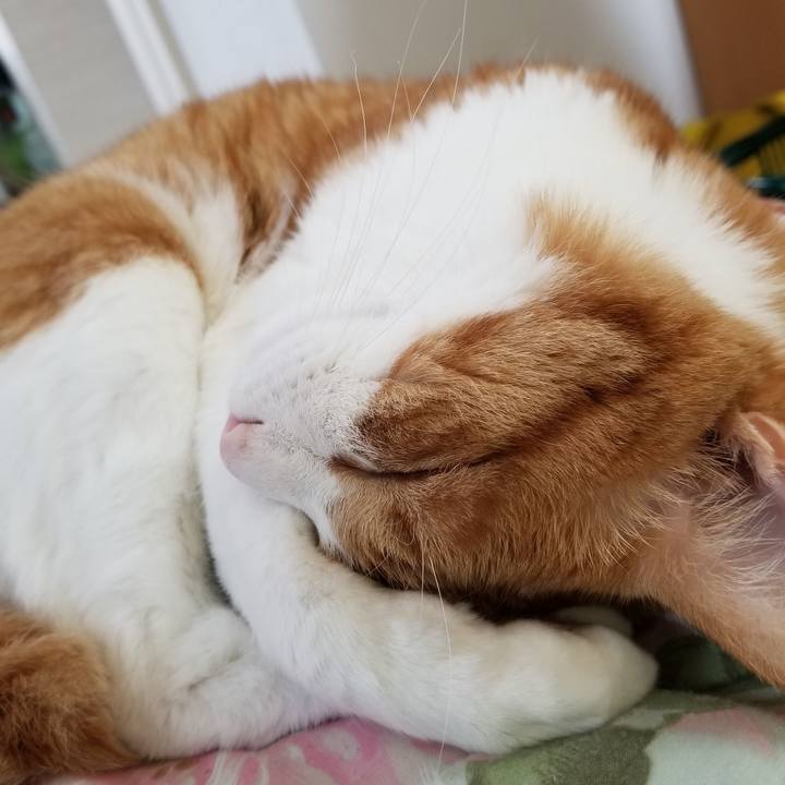 ちゃちゃさん今日も雨ですね😪お昼にはなむなむですよ🙏#茶トラ白
