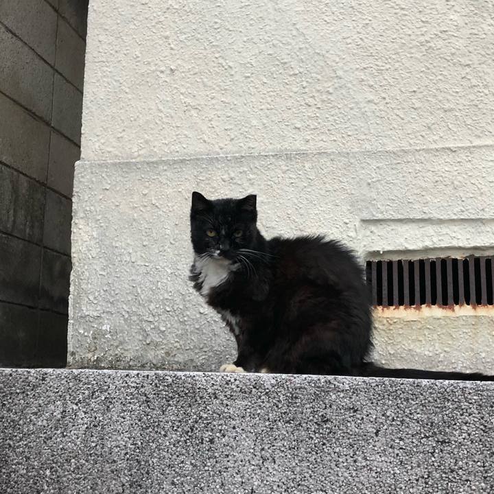 こんばんにゃ くろしろちゃんは いつもここ #お外のコ ❓#ねこ句