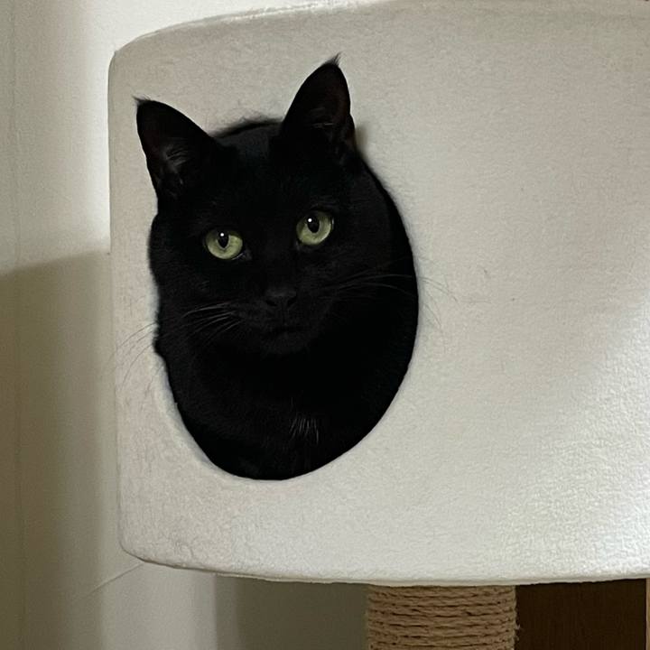 首だけを 出して見てるね ニャルソック? #黒猫#ねこ句